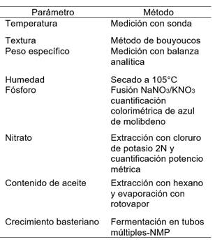 En la Tabla 2 se indican las propiedades de textura y peso específico del suelo utilizado en el proceso de biodegradación de los aceites usados. La textura moderadamente gruesa del suelo fue considerado como un factor no limitante en el proceso de degradación debido a que la adición del material de excreta de ganado le proporciona al sustrato mayor capacidad de retención de humedad y nutrientes. La textura del suelo y su contenido químico es importante en el proceso de biodegradación. Estos parámetros afectan la capacidad de retención de agua y aceite, ya que perturban la permeabilidad, el contenido de humedad y la densidad del mismo, el tipo y número de microorganismos y el acceso de oxígeno (17). En la tabla 3 se indican el promedio de las variables físicas, químicas y mirobiológicas del sustrato antes del tiempo de biodegradación de los residuos aceitosos y en la Tabla 4 el promedio de las variables físicas, químicas y mirobiológicas del sustrato durante el tiempo de biodegradación de los residuos aceitosos; se observa que durante el proceso de degradación ocurre un aumento de las variables físicas que interfieren en el proceso de degradación del hidrocarburo como lo la temperatura el pH y la humedad. La oxidación de los hidrocarburos produce ácidos grasos que son utilizados por las bacterias o liberadas en el medio. Si este es el caso, el pH del medio disminuye. Esta acidificación se emplea como parámetro para evaluar la degradación, junto con el incremento de la población microbiana a lo largo del tiempo es el resultado del consumo de los hidrocarburos como fuente de carbono y energía (18). La disminución de la concentración de hidrocarburo en el medio puede ser un segundo indicador de la degradación. Si la población logra utilizar el contaminante como fuente de carbono, la concentración del mismo debe disminuir con el tiempo y ser reemplazado en el medio por nuevos metabolitos (19).