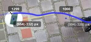 En la Fig.4 se muestra el desplazamiento del frisbee (línea continua gruesa), el tiempo en cada posición en milisegundos y la ubicación del disco dentro del plano en píxeles; siendo el primer valor la posición en X y el segundo la posición en Y. El video se obtuvo por medio de un celular Samsung J5 que está compuesto por una cámara de 13 megapíxeles con capacidad de grabación de 1080p a 60 fps, se opta por esta cámara ya que es un estudio académico que tiene como finalidad ser replicado por cualquier persona que incursione en estudios similares.
