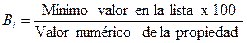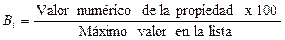 (1)Para propiedades en las que un valor bajo es lo más conveniente, el factor de escalamiento se calcula de acuerdo con la ecuación (2):