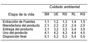 Un análisis de ciclo de vida racionalizado (ACVR) para productos ambientalmente responsables (PAR) debe tener las siguientes características: debe guiar directamente a comparaciones entre productos calificados, ser usado a través de diferentes términos e involucrar todas las etapas del ciclo de vida de un producto [24]. Un análisis que sigue este criterio fue desarrollado por Graedel y Allenby en 1993 [26] en el que se utiliza una matriz de 5x5 en la que en una dimensión están ubicadas las etapas del ciclo de vida y en la otra los impactos ambientales (ver Tabla 2).