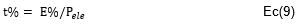 Como se requiere comparar los resultados presentados en [3] con los del modelo desarrollado, y estos están en función del tiempo requerido para que una corriente de arco DC que simula un rayo (t%), es necesario encontrar una ecuación que dependa de este tiempo, y t% multiplicado por la potencia transferida por la descarga de arco DC (Pele) es igual a la energía necesaria para fundir un porcentaje de la sección de cable (E%), por lo tanto, t% es igual a E% dividido por la potencia transferida por la descarga Pele.