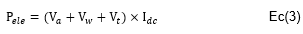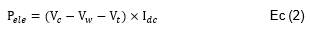 Ec (3)En las ecuaciones anteriores Vc y Va son las caídas de caídas de tensión en el caso de cátodo y ánodo respectivamente, Vw es la función de trabajo del electrodo, Vt es una caída de tensión estimado con el cociente entre la entalpía debido al arrastre de electrones y la corriente de arco Idc.