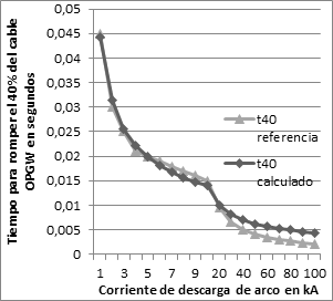 A continuación se presenta una tabla con los datos tomados de la referencia y los datos calculados para t40 para corrientes de Idc desde 1 kA hasta 100 kA: