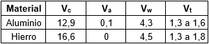 Iwata en [3] presentó los valores de las variables indicadas anteriormente los cuales se muestran en la siguiente tabla: