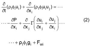 (1)The momentum balance for the water in multiphase flow is described in following general formulation as described in Eqs. (2) and (3):