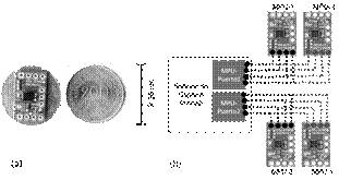 En la Fig.3. (a) se presenta una de las unidades MPU-9250 usadas en el sistema Imocap junto a una escala de referencia, y (b) el sistema de conexión de múltiples unidades MPU a Imocap.