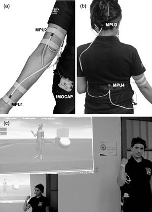 Se han realizado pruebas satisfactorias usando Imocap, las cuales están destinadas a la determinación de amplitudes articulares por medio del sistema inercial-magnético [31], así como el rastreo de los movimientos del segmento del brazo y antebrazo para procesos de rehabilitación [32]. En el mismo sentido, se ha utilizado esta arquitectura y específicamente la información EMG para el reconocimiento de patrones [33], análisis preliminares de fatiga muscular y el desarrollo de protocolos de prueba y aplicación de señales EMG en contextos académicos y de laboratorio, como se muestra en la Fig. 5.