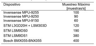 Se presenta en la Tabla 1 los múltiples dispositivos MPU de tecnología inercial-magnética soportados por Imocap con sus respectivas tasas de muestreo máximas. La gran variedad de dispositivos soportados por el sistema de captura permite su uso en diferentes aplicaciones de recolección de movimiento biomecánico, desvaneciendo también los límites de interoperabilidad entre dispositivos de tecnología similar que se encuentran en diferentes familias.
