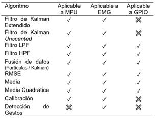 En la Tabla 2 se muestra un resumen de los algoritmos disponibles dentro del sistema de captura y que enriquecen la funcionalidad de la plataforma. Todo el procesamiento digital se realiza dentro del hardware de Imocap.