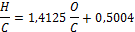 (3)Donde %H es el porcentaje en masa de hidrógeno, %O es el porcentaje en masa de oxígeno, %C es el porcentaje en masa de carbono, todos en base seca libre de ceniza. MH, MO y MC es el peso atómico del hidrógeno, oxígeno y carbono, respectivamente. Según este diagrama, valores altos de las relaciones H/C y O/C favorecen la producción de volátiles y líquidos durante el proceso de pirólisis, mientras que con bajos valores de estas relaciones se favorece la producción de sólidos durante la pirólisis. En combustión se busca que la relación de O/C sea baja y el valor de H/C sea alto, lo cual garantiza que el residuo tiene un alto poder calorífico que beneficia la obtención de energía [8].