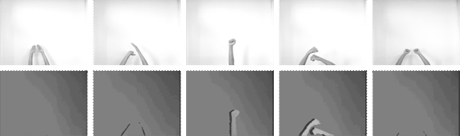 both channels RGB and depth. The proposed dataset was captured in a controlled scenario, with uniform background and relative small camera jitters. A total of five persons were recorded where each one develops five different actions with one or both hands. The selected actions involve several gestures with different motion representative signatures and with displacements in the depth axis. Each selected gesture was recorded five times to obtain a range of statistical variation of each motion. A total of 125 videos were recorded. In Fig. 4 is illustrated the different gestures captured in the proposed dataset. The dataset is available at: (to be announced) repository (to be announced).