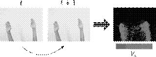 (3)This approach uses a regularized variational function to obtain a total dense scene field, while preserving motion discontinuities. The scene flow is finally obtained as the sum of three restriction defined above. In Fig. 1 is illustrated a typical computation of scene flow for a couple of frames. It is shown a gray-map representation of the