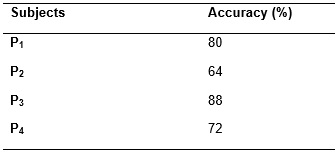 In a third experiment, as reported in Table 3, was evaluated the entire dataset by including all of the gestures. In such case, the average accuracy of the proposed approach is 77% which is favorable in terms of the capability of the approach to represent gestures. It can be observed that the subject P3 has a lower score because the actor develops the action at a different velocity w.r.t to the others, which combined with some artifacts in scene, results in few trajectories of representation.
