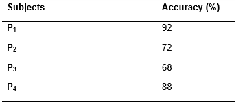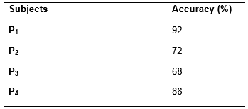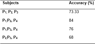 of subjects, where all the possible combinations of 3 persons were used to carried out the analysis. From this experiment it can be confirmed that subject P3 reports some variations w.r.t to the rest of the population, which impact in lower results. The proposed approach is however robust to capture this variations and try to predict correctly the developed gesture.