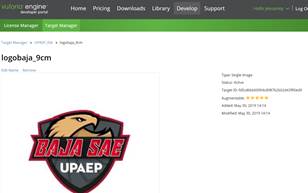 Una aplicación RA requiere de una imagen o logo que servirá a la aplicación RA escanear y mostrar el modelo CAD y la superposición en el modelo físico. El logo será el objeto físico para colocar en la estructura del vehículo todo terreno y observar la propuesta de la posición de la nueva transmisión. Para este propósito se empleó la aplicación digital Vuforia Developer, donde se da alta en el servidor del desarrollador una imagen con definición adecuada y un tamaño máximo de 2mb. A continuación, se maneja una categorización de estrellas (1 estrella es la peor calificación, 5 estrellas es la mejor) para poder identificar que el logo o imagen podrá ser observado fácilmente por el smartphone o tablet, como se observa en la fig.9.