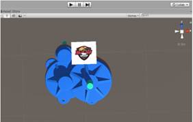 Este logo se convierte en una referencia en los servidores de Vuforia, y da el acceso a la información digital. Se creó y dio de alta en los servidores de Vuforia para su uso en la app correspondiente. Posteriormente en Unity, se insertó desde el servidor el logo desarrollado, posicionando el mismo para después replicar su posición en la estructura del vehículo físico. En la fig. 10 se muestra el montaje correspondiente.
