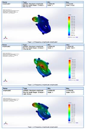 En los resultados de aplicación de los modos normales de vibración; ver fig. 14, se puede observar que los valores obtenidos no alcanzan la frecuencia de operación del motor Briggs & Straton utilizado en el vehículo de 33.33 a 83.33 Hz (2000 rpm - 5000 rpm). Lo que permite operar con seguridad con las vibraciones producidas en el sistema.