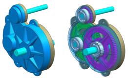 Para realizar una comparación entre la versión actual de la caja de transmisión con la propuesta se plantean variables medibles de masa, volumen y área de superficie.