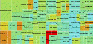 Finalmente, a través del mapa de palabras clave, ver Figura 9, se observa que tan relacionadas están las temáticas y cómo unas son interdependientes de otras. En el mapa, se encontraron nuevas claves para realizar nuevas funciones de búsqueda. Así, se toman las palabras en verde (palabras actuales), y se construyen las siguientes funciones de búsqueda en Web of Science: TS=(CSCL AND group formation) OR TS=(CS1 AND CSCL AND “cell block method”) OR TS=( CSCL AND “Multi agent” AND POKS). Estos resultados nos llevaron a tener un corpus de referencias más completo que el inicial.