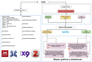 El modelo de SASR parte de los trabajos de [30], [31]. El modelo de SASR caracteriza un corpus de referencias automáticamente, donde las referencias bibliográficas provienen de un archivo Bibtex. En SASR se implementan métodos y algoritmos de procesamiento y análisis de datos, los cuales extraen patrones y visualizaciones para entender el estado actual de un tema de investigación.