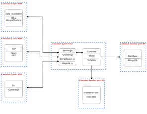 La capa del controlador cuenta con cuatro módulos que exponen un conjunto de operaciones a ser llamadas desde la vista. Estos módulos o servicios se pueden clasificar en dos categorías: servicios de obtención de información y servicios de procesamiento y análisis de datos. Entre los módulos del prototipo hay uno extra que administra la aplicación llamado functions.py, el cual permite las operaciones CRUD, por las siglas en inglés de create, read, update, delete, sobre los usuarios y el sistema.