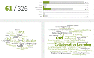 En el mapa de coautoría, ver Figura 7, se encontró que hay más de 1000 autores relevantes sobre el tema general. Pero en el mapa aparece un grupo de autores de España y Brasil que son los que más han desarrollado el tema CSCL para alcanzar competencias en cursos de programación, con base en esta información se refinó las ecuaciones de búsqueda. A través de las estadísticas de SASR, ver Figuras 5, se pudo identificar la unión de CSCL e inteligencia artificial, esto tuvo un impacto en la definición del proyecto, desde el título del proyecto mismo. En la línea de tiempo que presenta SASR, se identificó la evolución del uso de tecnologías para el tema de investigación. De igual forma, se pudo identificar que hay 61 artículos que son específicos y relevantes para esta investigación, ver Figura 6.