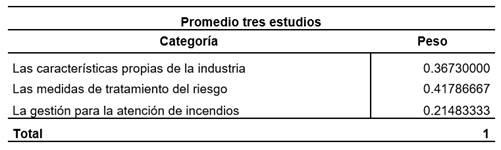 Las medidas de tratamiento del riesgo tienen el mayor peso dentro de la gestión del riesgo de incendio en las industrias, esta situación significa para los gestores de riesgos de las industrias considerar las protecciones automáticas y el diseño seguro si quiere obtener una reducción importante en la exposición al riesgo de incendio.