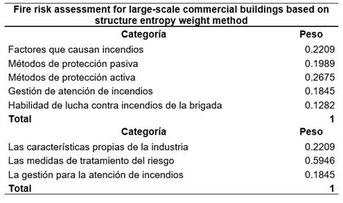 [10] F. Liu, S. Zhao, M. Weng y Y. Liu. (2017). Fire risk assessment for large-scale commercial buildings based on structure entropy weight method. Safety Science, p. 26–40.