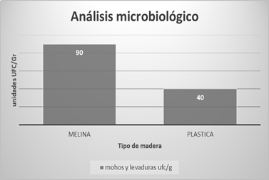 Si bien, hay 40 ufc/g en la madera plástica, se afirma con total certeza que los microorganismos NO podrán reproducirse, debido a la falta de condiciones ambientales adecuadas, considerando que la madera plástica en condiciones normales, no supera un promedio de contenido de humedad del 0,5529%, lo que se convierte en condiciones NO aptas.