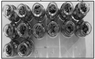 Se realizó el ensayo en los frascos de 50 ml y frasco de 300 ml [8] acondicionándoles el ambiente a condiciones de humedad, sustrato, temperatura y oxígeno similares a su medio, pero en ningún caso las termitas lograron adaptase al nuevo entorno y por ende, murieron en menos de 3 días. El ensayo se repitió más de 4 veces sin lograr la adaptación esperada. Se prosiguió con frascos de diversos tamaños buscando el mejor acondicionamiento para los organismos, pero todos los ensayos fracasaron [8].