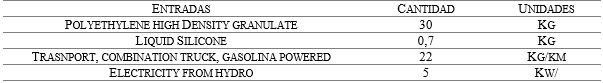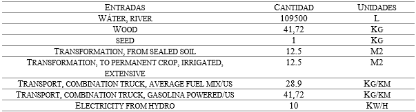 El inventario para la estiba de madera plástica elaborado en SIMAPRO 8.4.0 fue el siguiente: