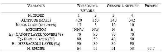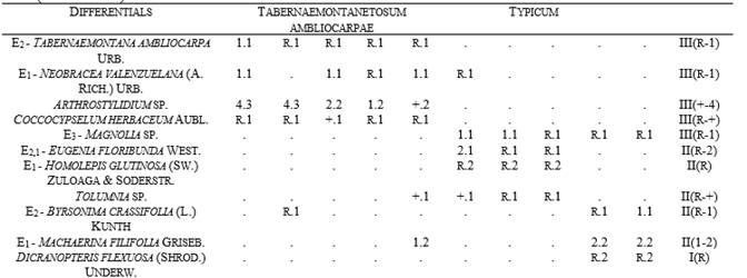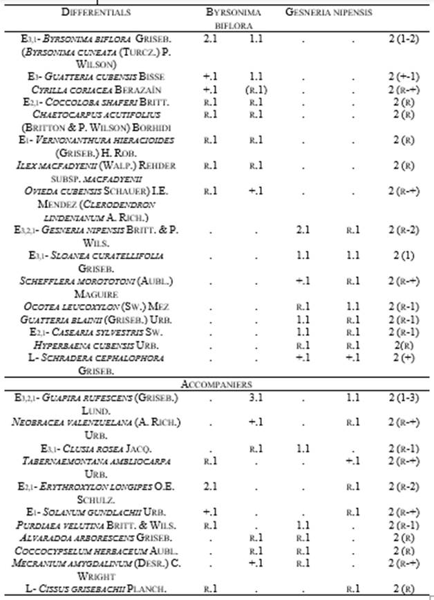 Two variants are found Byrsonima biflora and Gesneria nipensis. Both present a clear differential combination observed in Table 2.