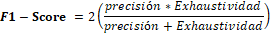 (4)F1 Score: Medida armónica de la precisión y exhaustividad, 1 denota exhaustividad y precisión perfectas.
