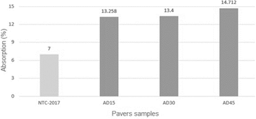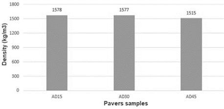 Figure 5 hows the absorption values for paving stone specimens with substitution percentages of 15% (AD15), 30% (AD30) and 45% (AD45).