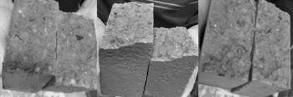 In turn, Figure 8 shows the internal structure of three paving stones with different substitution percent-ages after carrying out the flexo-traction test.