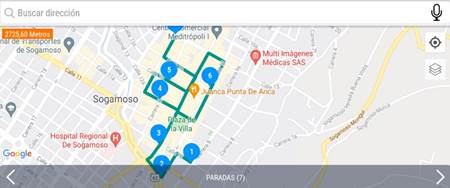Aplicado cada método de distancia se obtiene cada ruta final, cumpliendo las especificaciones de menores distancias y recorridos por vías principales de menor flujo en la ciudad.