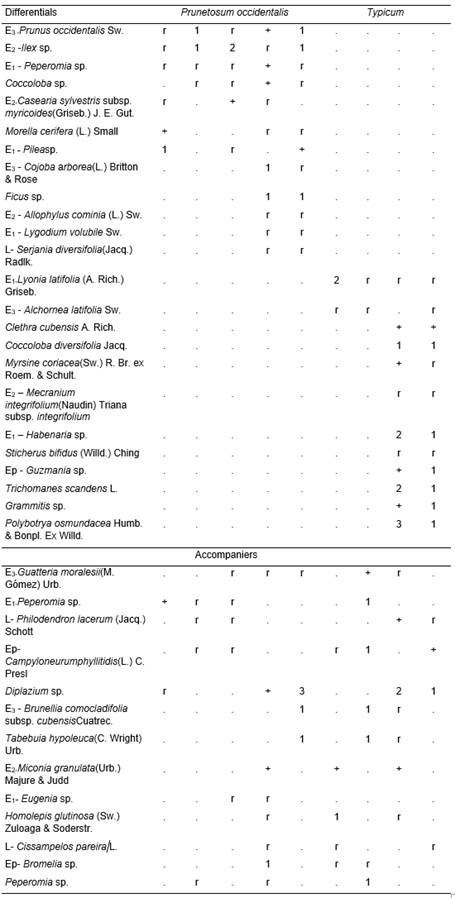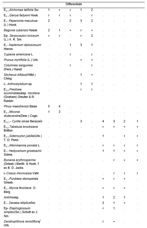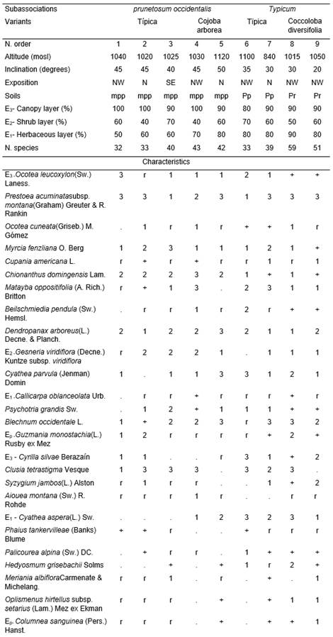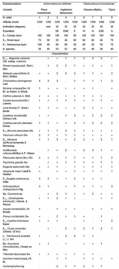 The first one were characterized negatively, since several species that make up the differential combination of the second were missing. This in the variant Cojoba arborea were well defined (Table 1), missing in it Phaius tankervilliae that were part of the characteristic combination.