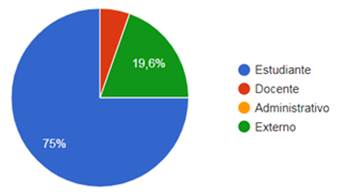 Como se puede apreciar en la Figura 11, con un 75%, las aplicaciones han sido usadas por estudiantes y 19,6% por personal externo a la institución.