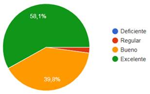 Un aspecto importante consiste en saber cómo consideran los usuarios el servicio recibido por la app. Como se observa en la Figura 12, con un 58,1% la consideran excelente y un 39,8% la consideran buena.