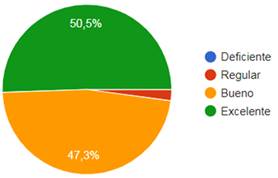 Al tratarse de un recurso tecnológico, toma relevancia saber la calificación con respecto a las condiciones tecnológicas de la app, como se observa en la Figura 15, donde el 50,5% califica la app como excelente, y el 47,3% la califica como buena.