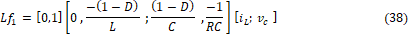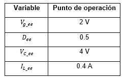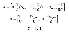 , son las variables del sistema evaluadas en el punto de operación, y se considera la matriz C de forma que la salida medida es el voltaje del capacitor, es decir el voltaje en la carga.