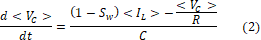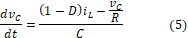 Reemplazando (3) en (1) y (2) se obtiene el modelo promediado para el sistema convertidor boost DC/DC descrito por las ecuaciones (4) y (5).