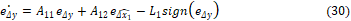 (32)Si se aplica el concepto de control equivalente [13], se obtiene la dinámica del error de la parte no medible así: