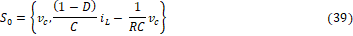 es el voltaje de entrada del convertidor y R, L, C son los parámetros del circuito de la Figura 2. En este trabajo se requiere un modelo explicativo del convertidor con el fin de diseñar observadores de estado que permitan estimar la corriente del convertidor con base en la medición del voltaje en el capacitor. Por lo tanto, no es deseable tener un modelo con una variable discontinua como lo es