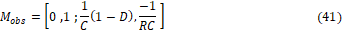 es una matriz (m x n) con m el número de salidas medibles, en este caso solo se medirá el voltaje en el capacitor