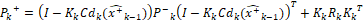 (24)Donde P corresponde a una matriz que contiene las covarianzas del ruido del proceso y de medición,