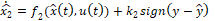 Para el diseño del observador por modos deslizantes no lineal se utiliza el mismo modelo no lineal de la planta. La estructura del observador es entonces [3]: