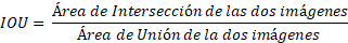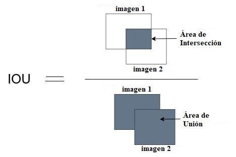 La intersección sobre unión es un término que, para el propósito de este artículo, se define como el grado de superposición de dos objetos, en nuestro caso dos imágenes. Para conocer el grado de superposición se realiza la comparación con una máscara real y una máscara de predicción, como se menciona anteriormente, y por medio de un algoritmo se determina esta métrica en un número real que se encuentra en el rango de 0 a 1, siendo 1 el resultado óptimo o ideal. Matemáticamente se pueden interpretar el proceso del cálculo como se explica en las siguientes figuras: