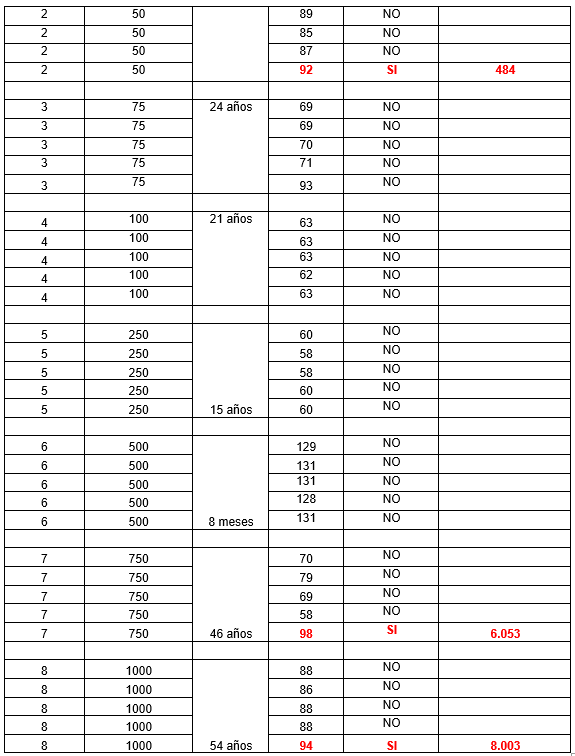 La Tabla 5, muestra una prueba realizada con ocho (8) usuarios de diferentes edades, dónde se registró el valor del dato correspondiente al parámetro de FC, leído, para cada uno de los usuarios que participaron de la prueba, para cada uno se realizaron cinco (5) tomas de parámetro FC. El ejercicio, también consideró valorar la eficacia para soportar conexiones en el servidor, y se pudo realizar la prueba (con simulación) hasta con mil (1000) usuarios conectados, al mismo tiempo.