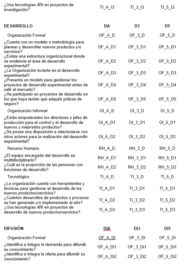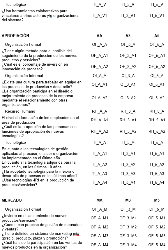 Como resultado, para la capacidad de apropiación de 4RI para la producción, se conservan las variables como se señala en la tabla 6.